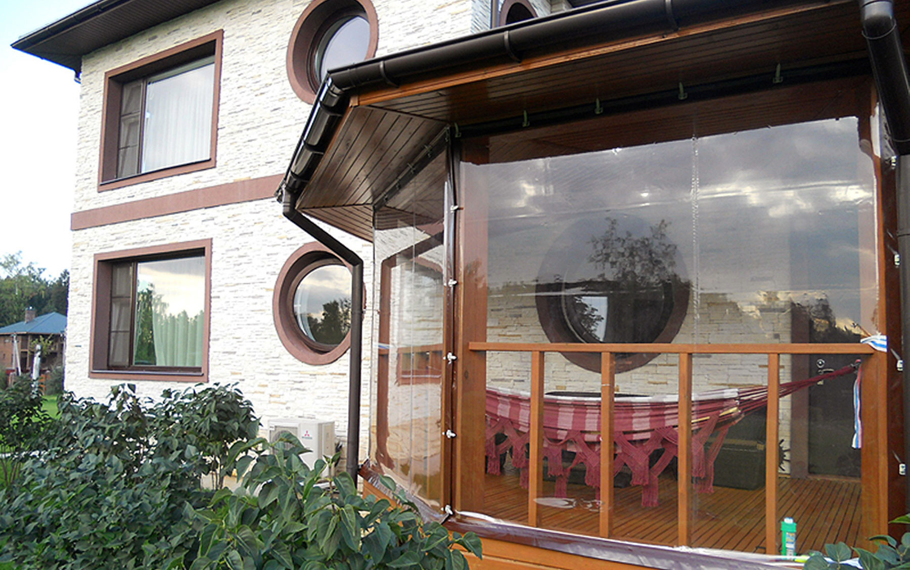 Установленные мягкие окна выглядят как полноценное остекление